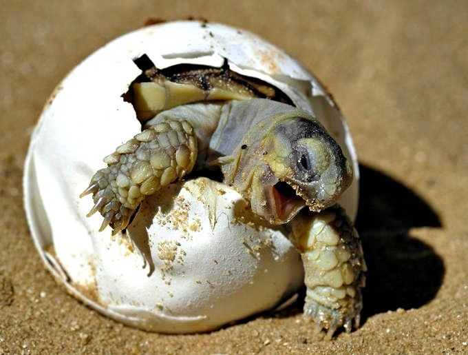 El tiempo de incubación varía entre especies, pero normalmente es de 45 a 70 días, las crías nacen casi al mismo tiempo, emergiendo del nido y dirigiéndose hacia el mar guiadas por la luz de la luna.