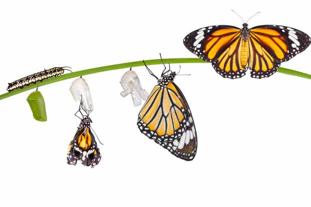 Mientras se encuentra en este estado, no se alimenta, pero su cuerpo sufre grandes cambios morfológicos y metabólicos, llamado metamorfosis, cuando la mariposa adulta está formada y lista, rompe la crisálida y comienza su vida de mariposa.