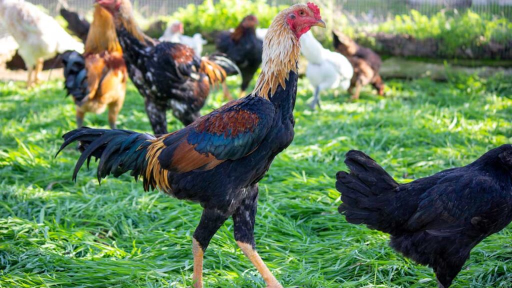 - Gallo Asil (India): robusto, con carácter fuerte, criado por siglos para combates tradicionales.