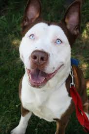 Un hermoso perro con ojos azules. El Pitsky es un hibrido entre un Pitbull y un Husky. Tiene la contextura de un Pitbull, pero solo dos detalles, las hermosas orejas y ojos del Husky. Es la combinación perfecta entre un perro rudo y uno hermoso.